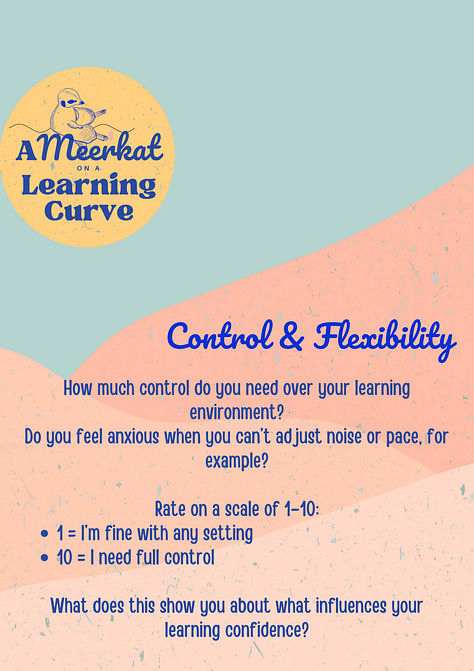 This isn’t meant to imply that physical learning spaces are terrible places to learn. It comes back to identifying the factors that impact our confidence and finding focused strategies for those specific factors, rather than playing whack-a-mole and feeling like nothing works, so we feel a bit more in control.